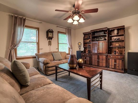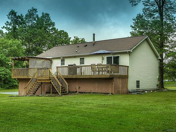Beautiful home is meticulously maintained inside and out. Nestled on over 8 lush, level partly wooded acres , home has prime location. Minutes to I84, gas stations, shopping etc. You'll love entertaining or just relaxing on expansive deck, with its oversized hottub(can fit 10 people)off the master bedroom. There's plenty of room for a swimming pool, swing set, large tent for outdoor parties, etc and with its circular driveway, you can easily pack the cars in! Remote operated alarm with cameras provide that sense of security that every homeowner wants. Interior features nice size rooms to place your furniture and a lot of storage space especially with full attic. Kitchen space is maximized with island that provides extra counter space as well as room for barstools for casual meals. Finished lower level has a family room and extra room easily used as office or guest bedroom. Whole house fan and ceiling fans to cool down.Heated garage A lot of house packed into this price. MUST see!