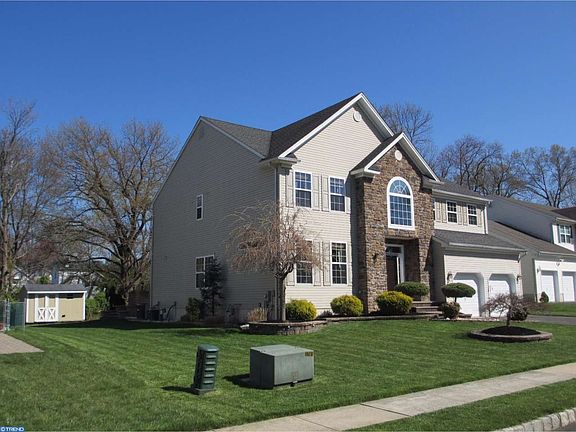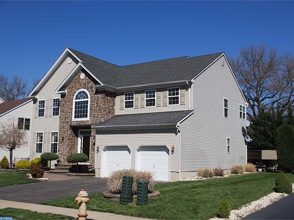 Large newer 4 bed 2 1/2 bath Colonial on a quiet cul-de-sac location in Hamilton Square. This home is meticulous and full of upgrades. The first floor starts with a cathedral/vaulted ceiling in the foyer that features hardwood floors throughout. There is a bright formal living room with an transom window on the side. There is a half bath with pedestal sink. Walk down the hardwood floored hallway to the kitchen that also has hardwood floors, 42' maple cabinets with granite counters and tiled back-splash. There are also stainless steel appliances and large sliding Anderson glass doors, a lot of recessed lights, a large walk in pantry and a large space for a big table. Adjoining to the kitchen is the family room that has a wood burning fireplace. The formal dining room has hardwood floors, chair rail, and a large chandelier. Down the hall is a main floor laundry room and another large room with hardwood floors that is being used as an office, but it could be a 5th bedroom if desired. The second floor features 4 large bedrooms and 2 full baths. The master bedroom is huge and features a ceiling fan and recessed lights. There is also a very large walk in closet. The master bath has a large custom shower, with 4 shower heads, that includes an overhead waterfall fixture and all glass walls. All bathroom fixtures are Grohe high end trims. There is a Jacuzzi jetted tub situated in the corner, skylight, 2 double windows, wi-fi stereo speakers in the ceiling for your listening pleasure and a 6' double sink vanity with granite counters and oil rubbed bronze fixtures and porcelain tile on the floor. The 3 other bedrooms are very big with dual closets in each. The main bath has a double vanity sink with granite counters and ceramic tile on the floors. There are 2 heaters and central air systems that control the first and second floors respectively. There is a large unfinished basement that is waiting to be finished for added living space if it is needed. The rear yard features a large raised E.P. Henry stone patio with dual steps and lighted columns with a knee wall that also has low voltage lighting as well. There is a separate area that also has a stone paver area with a gazebo and a spot for a hot tub if needed. The house has an alarm system and has been professionally painted.