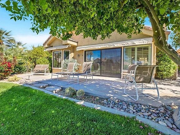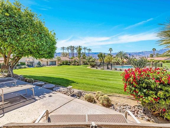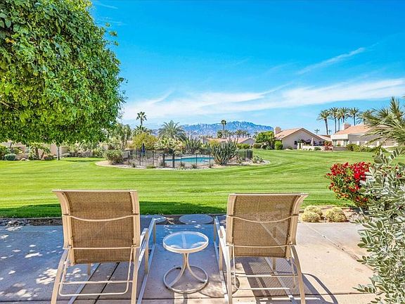 WELCOME TO SILVER SANDS RACQUET CLUB...a guard gated community with 256 homes located adjacent to the J. W. Marriott Desert Springs Resort and across from Desert Willow Golf Resort where Palm Desert residents play for reduced rates. THE FEATURED HOME IS A RARE OPPORTUNITY to own one of the largest floor plans in the community. Home is FREESTANDING (no common walls) with 3 bedrooms, 3 baths and a WEST FACING, UNOBSTRUCTED VIEW OF THE SNOW CAPPED MOUNTAINS. Upgrades include remodeled kitchen with stainless appliances, 3 remodeled bathrooms with walk-in showers. Tile floors throughout the living space and carpet in bedrooms. Adobe style fireplace in living room, Breakfast Nook in kitchen, wet bar and BONUS ROOM with built-ins perfect as a home office. PRIVATE SIDE COURTYARD with desert landscaping and EXTENDED back patio with MAJESTIC VIEW of mountains, greenbelt and one of the 15 community pools/spas. 2 car ATTACHED garage. FURNISHED per inventory. SSRC amenities include 7 tennis courts, 4 pickleball courts, fitness facility, 15 pools/spas, tennis pro on staff in season, clubhouse for social activities. HOA dues include roof, exterior maintenance, cable TV, internet, tennis, pickleball, trash removal and security. Silver Sands Racquet Club is definitely one of Palm Desert's BEST KEPT SECRETS. Please call for a private showing...YOU WILL NOT BE DISAPPOINTED,