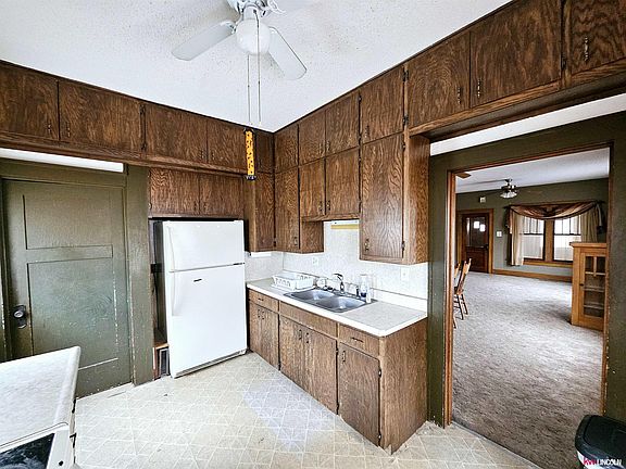 Looking for a simple home with a great backyard? Look no further than the potential of this home. Open living and dining area. Nice front porch with two main floor bedrooms and large bathroom. Kitchen off the back of the home with basement laundry, second bathroom and ample storage. Backyard is fully fenced with 6foot privacy fencing. Two car over sized detatched garage also included. Being sold As Is. Call your favorite REALTOR today!