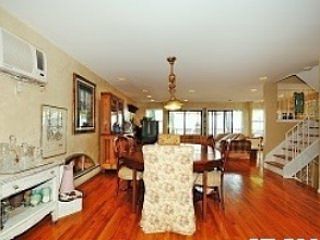 Not for 18 years has an opportunity arisen to buy a 4 to 5 bedroom, 2 1/2 bathroom 2800 sq. ft. home in this Malibu style waterfront community just 36 minutes from Manhattan via the Long Island Railroad. Relax in the luxurious master bedroom suite on the top floor, gaze up at the stars through the skylight above your bed, have your morning coffee in the sunlight on the private terrace overlooking the water. Then, go downstairs to the great room, with its eat-in kitchen [a door leads to a quiet, shady brick patio], cook yourself breakfast, walk through the formal dining area, then the living room and enjoy it on the second terrace, with the same magnificent, unobstructed water views of the Bay, Beach and Long Island Sound. Meanwhile, downstairs, your children or your guests may be sleeping in the 3 to 4 further bedrooms, or you might just be going to your home office after, of course, that walk along the beach, with your dog. Built in 1985, this is one of the premier properties in Beacon Hill Colony, a waterfront community of 41 houses and cottages that enjoy their own private beach, dock and mooring rights.Quarterly maintenance is $725 and the annual school and property taxes are only $8685! Come, see and fall in love with this exceptional property.