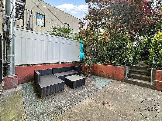 Don't miss this enormous duplex apartment with a private patio and garden! The beautifully renovated home has the conveniences of a condo with the privacy and quiet of a Brownstone. The large owner's bedroom on the main floor can easily fit a California King bed and boasts both a large walk-in closet and an en-suite bathroom. The open-plan living space is accentuated by an original fireplace and is perfect for entertaining. The kitchen boasts a large island and appliances to make any cook happy. There is also a large half-bath. The floor-through lower level fits a laundry area, exercise equipment, and a large open-plan space that can be used as a large office or entertainment area. Beautiful exposed-brick arches add to to the ambiance. A rarity in New York, this apartment has ample storage throughout, including in the windowed foreroom next to the kitchen. The real jewel are the large private patio and garden, which are lush with flora and are perfect for grilling out, relaxing in the sun, or practicing your green thumb. Nested on a quiet street, the apartment is minutes away to the Brooklyn Park Piers 5 & 6 (with their amazing views of the Statue of Liberty and the Manhattan skyline), Van Voorhis playground, and Cobble Hill park, and in close proximity to bustling restaurants and bars. F and G trains are a short walk away. Tenants are responsible for the heat and hot water.