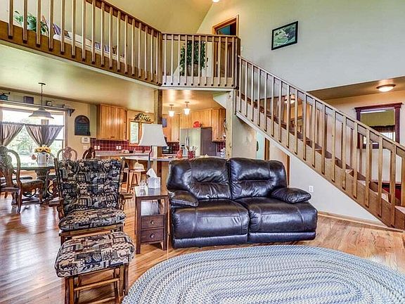 OPEN HOUSE CANCELLED Contract Pending. Five scenic acres! Half wooded and half open. New Roof: half in 2019/ half in 2023, New High Efficiency Heat pump 2023, Propane Tankless Water Heater, Stone Fireplace w Gas Logs, DR has Bay Window, White Oak Cabinets, All Appliances stay, Hardwood Floors throughout, Open and Airy Staircase, 2 master bedrooms. Multiple Decks, Large 21' x 20' Concrete Patio, Fenced yard, Propane Generac Whole House Generator, Big 30' x 24' Detached Garage with Staircase to Loft Storage and Workshop area. Crawl space walk height where mechanicals are located. Common area amenities include riverfront access (coded gate lock), firepit, and picnic area. This is a well-maintained property in a peaceful & desirable community.