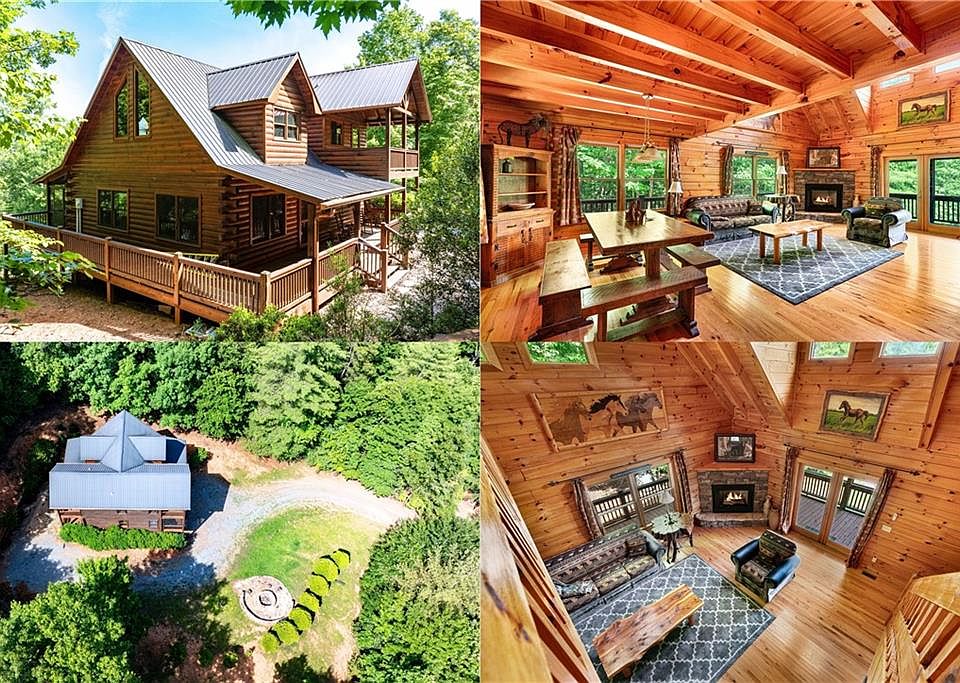 S’Mores at the fire-pit await you! Nestled in the serene mountains of Georgia, this enchanting log cabin is a true sanctuary surrounded by a lush forest of towering trees. From the moment you arrive, you’ll be captivated by the rustic charm and natural beauty that envelops this haven of tranquility. As you step inside, the open floor plan immediately greets you with a warm embrace, inviting you to explore its spacious and thoughtfully designed interior. The heart of the home is a cozy living area with a grand stone fireplace, perfect for those chilly mountain nights. Large windows flood the space with natural light, offering breathtaking views of the surrounding forest and distant peaks. The kitchen, seamlessly integrated into the living space, boasts modern appliances and views of the trees making it a joy for both casual meals and family cooking. The dining area, with its panoramic views, sets the stage for memorable gatherings with family and friends. One of the cabin’s most enchanting features is the custom firepit, where you can gather under the starry sky, sharing stories and creating lasting memories. It’s an ideal spot for roasting marshmallows, sipping hot cocoa, and soaking in the serene ambiance of the mountains. Step outside onto multiple covered decks, and you’ll find a haven of relaxation surrounding the entire home. Whether you’re enjoying your morning coffee, reading a book, or simply taking in the stunning scenery, this space offers the perfect blend of comfort and nature. The front porch also wraps around the cabin, providing multiple vantage points to appreciate the spectacular views and the symphony of nature. Privacy is paramount in this secluded retreat. The cabin is thoughtfully situated to ensure you feel a world away from the hustle and bustle, yet you’re just a short drive from charming mountain towns and outdoor adventures. Hiking trails, fishing spots, and scenic drives are all within easy reach, making this the perfect base for your mountain escapades. The bedrooms are cozy and inviting, offering a restful retreat after a day of exploration. Wake up to the gentle sounds of nature and the sight of the sun rising over the mountains, filling your soul with peace and rejuvenation. This log cabin isn’t just a house; it’s a lifestyle, an experience, a dream come true. It’s where you can disconnect from the chaos of everyday life and reconnect with what truly matters. Whether you’re seeking a weekend getaway or a forever home, this mountain sanctuary offers a unique blend of rustic charm, modern comfort, and unparalleled beauty. Come and experience the magic of this log cabin for yourself. It’s more than just a place to live; it’s a place to thrive, to find solace, and to create a lifetime of cherished memories.