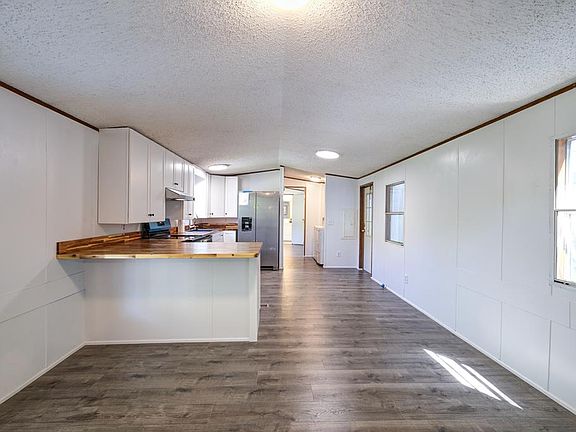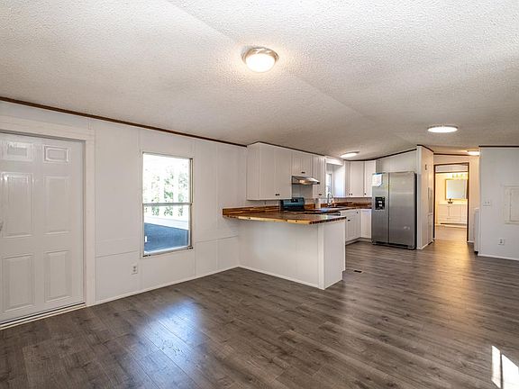 Welcome to this fully remodeled 3-bedroom, 2-bath manufactured home, perfectly situated on over an acre and a half of serene, wooded land. Tucked away in nature yet conveniently accessible from a paved road, this home offers both privacy and convenience. Step inside to find a bright, open living space with thoughtful updates throughout. The brand-new kitchen is a highlight, featuring beautiful countertops, modern cabinetry, and all-new stainless steel appliances. So new that you get to peel off the blue protective film! The spacious Master Suite boasts an en-suite bathroom for added convenience, while the two additional bedrooms share a second full bath, making this home perfect for families or those needing extra space for a home office or guests. Step outside onto the expansive front and back porches, ideal for relaxing, entertaining, or simply enjoying the peaceful views of your wooded surroundings. Whether you're sipping your morning coffee or hosting a barbecue, these outdoor spaces provide the perfect backdrop for year-round enjoyment. A double detached carport with an attached storage room ensures you have plenty of space for vehicles and tools, keeping everything organized and protected from the elements. The circular driveway makes parking easy, while the paved road frontage offers easy access in and out of your private retreat. Additional updates include a brand-new water heater installed in 2023, ensuring comfort and efficiency for years to come. With its combination of modern updates, spacious land, and peaceful surroundings, this home offers the perfect blend of country living with modern amenities. Don't miss out on this unique opportunity to make it your own!