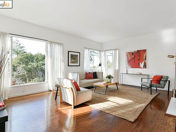Light-filled '40's home with snips of views, an open floor plan, lovely hardwood floors, a bit quirky but with budding mid-century charm, awaiting a new vision and someone with a green thumb. Main level has 2bd/1ba and an interior access to basement area laundry. 3rd bd is accessed from the outside downstairs, and has its own bath. The spaces are comfortable, the efficient kitchen feels bigger with the open access to the dining room.