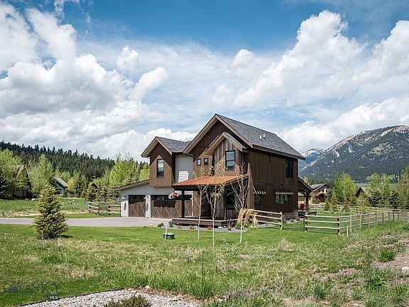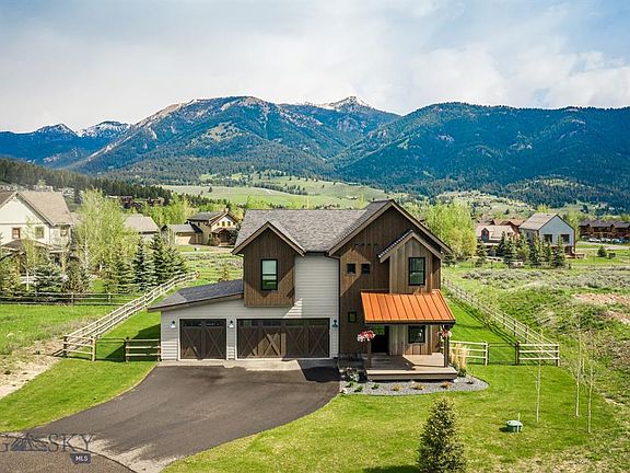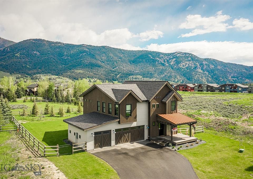 Built in 2017 at the end of a quiet cul-de-sac and impeccably maintained, this home checks every box for Montana living done right. Its location in the heart of Big Sky is a short walk from concerts, dining, shopping, and endless outdoor recreation, and the large fenced-in yard features spectacular mountain views. On the main level, the three-car garage and large mudroom with built-in shelving provide plenty of storage space for your gear, and the open-concept living areas are perfect for entertaining. With a large island, Thermador Professional appliances including a 36" fridge and double wall oven, the kitchen will draw out your inner chef. Upstairs are 4 bedrooms (including a large master suite with double shower and bathtub), 3 bathrooms, and a bonus room. In total, the home includes just under 2,700 square feet sitting on one of 11 lots in the South Fork Phase IV neighborhood that is permitted for an accessory dwelling unit, with opportunity to add living space in the future.