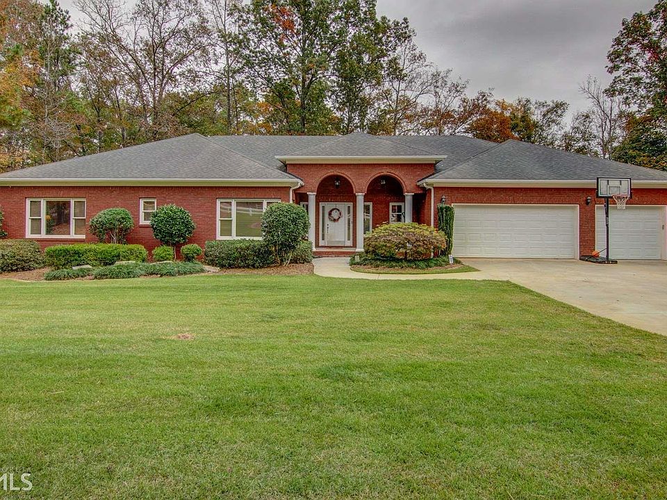 Impressive custom full brick ranch located mins from the square of Covington. This unique hm features a vaulted sunken grt rm w/a ventless gas frpl, a frml dining, an open & inviting dine-in kit w/island/breakfast bar, corian c-tops, walk-in pantry & peek-a-boo cabinets, an array of windows along the backside overlook the natural wooded yard & creek that borders the 2.07 acre lot, the massive owner's suite is sure to impress & features a lovely spa like bath w/jetted corner tub, 5ft shower and sep his & hers vanities. Full finished basement w/two add'l bdrms & baths, 2nd family rm w/fireplace, fully furnished theater/media room, bar area and tons of storage. Beautiful in-ground salt water pool, rock patio w/fire pit, huge deck plus a pole barn for RV/boat.