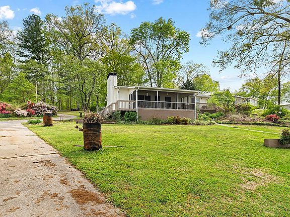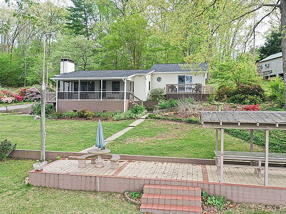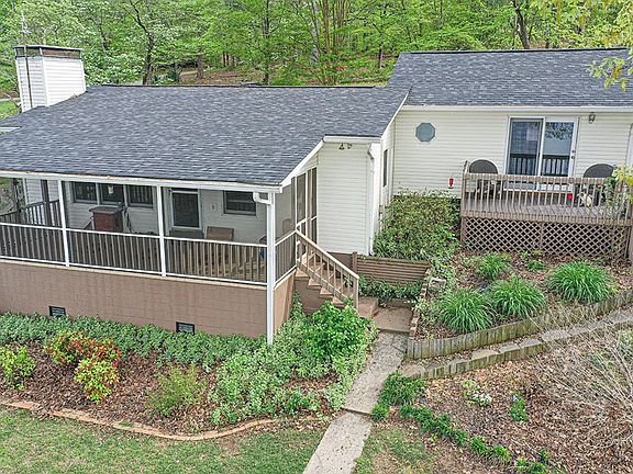 BACK ON THE MARKET DUE TO NO FAULT OF SELLERS! Welcome to your lakefront oasis! This quaint, yet roomy bungalow boasts not only big water panoramic views but also offers 190 feet of pristine waterfront. Sip your morning coffee on your charming tiled screen porch while taking in the serene surroundings. Venture inside to find a cozy living area with a gas log fireplace creating a warm and inviting atmosphere. The kitchen features ample cabinet space with the dining area offering a breathtaking lake view. The primary bedroom, with hardwood floors offers a peaceful retreat featuring its very own private deck. It also features an ensuite bathroom with a spacious closet. The guest bedroom, also with hardwood floors, is equally inviting and the guest bathroom features a walk-in shower. This exceptional property with a well-manicured lawn and landscaped grounds offers added beauty and tranquility. Under the porch you will find extra storage space perfect for storing your lawn mower and other garden tools. Step out back to discover a covered patio area perfect for entertaining. A private dock and boat ramp provides easy access to the lake allowing you to enjoy boating, fishing and water sports from your very own backyard. For the avid car enthusiast, hobbyist or need for extra space, this property features not one, but two garages. One garage is equipped with heating, cooling and hot water. The second garage offers ample parking space for two cars with convenient roll-up door access. Additional features include a new roof in April 2023, new HVAC installed in January 2024, new hot water heater and refrigerator in 2022. Summer is right around the corner so don't miss YOUR chance to own this lakefront retreat with stunning big water views. Schedule your private showing today and start living the lakefront lifestyle YOU'VE been dreaming of!