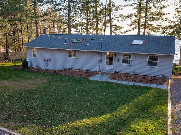 Sebago Lake waterfront property with western views looking over Frye Island and has incredible sunsets. Upon entry you will find Guest Rooms to the right with a Half Bath. The Dining Room opens to the Kitchen with new shaker style cabinets, stainless steel appliances, and quartz countertops. The Living Room has a wood burning fireplace and wood floors throughout. This home has 3 Bedrooms and 1.5 baths that have been recently updated. The 3 Season Sunroom steps out to the large patio, terraced gardens down to the new yard updated with irrigation and the 100' of waterfront beyond. Sandy bottom swim access and deep water access for larger boats. Quick access to the Goodlife Market, restaurants, marinas and Windham shopping ammenities. Less than an hour to Portland.