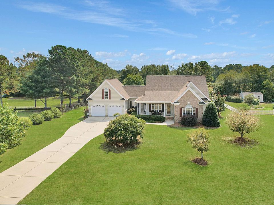 Lovely 3 bedroom 2 bath home with large bonus room, lots of hardwoods, screened porch plus patio overlooking above ground swimming pool. Large master suite w/ garden tub and separate shower. In addition to large 2 car garage is a 20x20 detached garage plus an 8 x 12 building with shelter. Home features an alarm system, fenced backyard, gutters and much more. Home is outside the city limits of Coats and convenient to Campbell University and Raleigh.