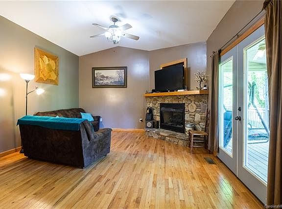 Nestled in the woods of beautiful Lake Toxaway....just 12 minutes to downtown Brevard this lovely home offers 4 bedrooms 3.5 baths. The main level features a warm and inviting feel with a natural stone fireplace in the living room. A open wrap-around kitchen & breakfast nook that makes for easy entertaining & a separate dining room includes everyone you want to invite! ?? You will love the bright & sunny den/office & master suit on main with a walk-in closet & huge master bathroom invites you to soak in the oversized jacuzzi tub or walk-in shower. Also on the main level a separate laundry room & a spacious 2-car garage. The basement opens to a large family room that also boast of a natural stone fireplace...room to play! Plus a large bedroom and full bathroom, den/office AND...TWO workshops or storage rooms. A bonus is a corn-heater that can heat the house & the water heater. A 40-year architectural roof was installed 2007! A storage/playhouse is wired for cable & electricity.