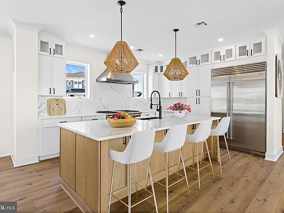 Nestled in the heart of Beach Haven West, 75 Willard Dr embodies the essence of coastal living with a touch of elegance. Located in the sought-after Beach Haven West neighborhood, just a 3 minutes boat-ride away from the bay and minutes away from the bridge to LBI, this home offers a serene retreat right on the waterfront. As you step inside, natural light floods the space, highlighting the seamless flow of the open floor plan. The kitchen, equipped with modern Wolf appliances, quartz countertops, an oversized island, a Sub-Zero fridge, and custom cabinetry, effortlessly connects to the inviting family room, creating the perfect setting for entertaining guests or enjoying quiet evenings with loved ones. The main level also features a cozy sitting room, a formal dining area, a main bedroom / office with a full walk-in bathroom and closet, as well as a half-bathroom. Upstairs, the spacious owners suite boasts a luxurious main bathroom with exquisite tile work and a generous walk-in closet overlooking the lagoon, as well as a walkout to the 2nd floor deck. Four additional bedrooms provide ample space for family or guests, with a total of 4.5 bathrooms, with one of the bedrooms with a en-suite, ensuring everyone's comfort. Outside of the oversized eight-foot sliding doors through the kitchen lies a charming fiberglass deck overlooking the new in-ground saltwater heated pool, perfect for enjoying the coastal breeze with a cup of coffee, or for entertaining. A new dock and 120 ft bulkhead provide easy access to the water, while an outdoor shower adds convenience after a day of boating or swimming, as well as a full outdoor kitchen for entertaining. Additional features include Anderson 400 series windows throughout, ensuring energy efficiency and durability, and an elevator that services all levels of the home, providing ease of access for all. One of the garage doors faces the front and back yard, and can double as a pool / bar cabana. On the rooftop, you’ll find 360 degree lagoon views, direct views of the LBI bridge, with a built-in tranquil fire pit, perfect for relaxing summer nights. The home will come with pre-wiring for speakers both internally and externally. The home was built by Builders 22, renown luxury home builder, and Monica Hernandez Interiors, renown design specialists. Located conveniently near the LBI bridge, and just moments away from the Garden State Parkway, this home offers the perfect blend of tranquility and accessibility. Whether you're looking for a full-time residence or a vacation getaway, 75 Willard is sure to impress. Welcome home.