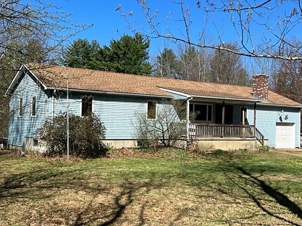 This property is all about location! Ranch home with vaulted ceilings and masonry fireplace with wood hearth on 8 acres in Chesterfield Ma. The lot abuts The Oak Hill Wildlife Management Area.- 673 acres of wooded land where snowshoe hares and white tail deer abound. Close by is the Westfield River, annually stocked with trout, and of course. the Chesterfield Gorge where hiking and fishing comes with beautiful views. Approximately 15 Mins to Northampton and 30 minutes to the Berkshires. Thoughtfully laid out, this sunny ranch offers the chance to get into some country acreage at a great price point. There are a few things to do here (carpets have been taken up and it's ready for your new floors) Huge Primary Bedroom with two closets, beautiful masonry fireplace in living room- just a few of the reasons to come and take a look. Listed well below assessed value, and priced to sell! Showings delayed until 4/27 but you can book your spot now! We don't think this is going to last