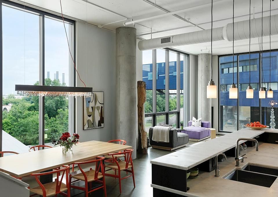 This is the one youâve been waiting for! If youâve ever dreamed of living beside the landmark Guthrie Theater, the historic Gold Medal ruins, and the beauty of the Mississippi River all at once, look no further!This highly dramatic corner floor plan is perfect for entertaining and people-watching through twelve foot walls of windows and your private balcony. Loads of sun, incredible amounts of custom storage, flexible floor plan, chefs kitchen and private guest suite on upper level. Striking feature wall reminiscent of COR-TEN steel as seen on the exterior of the building. Truly a one of a kind residence at Humboldt Lofts, in the heart of the Mill District.