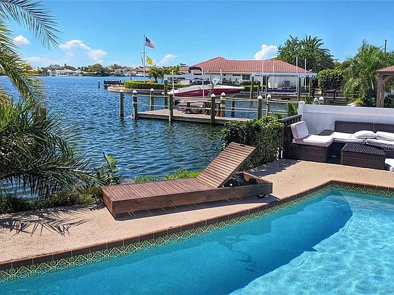 Enjoy your morning coffee, cocktail or dinner on the spacious waterfront patio with pool or the boat dock, and watch the dolphins swimming in the bay. In the afternoon, take a dip in the pool to cool off or take a stroll to St Pete Beach's pristine beaches and restaurants. This waterfront home is the perfect vacation getaway for up to 8 people. It features a gourmet kitchen with marble and Viking appliances. Split level design with kitchen, living room, dining room and family room on one level, the master suite and two additional bedroom on the upper floor and the fourth bedroom (in-law suite) with en suite bathroom and kitchenette on the lower level with direct access to the pool area. Guests enjoy a private pool, patio, boat dock and barbecue area with two grills. The home is fully equipped for short-term or seasonal occupancy with WiFi and weekly housekeeping is included.