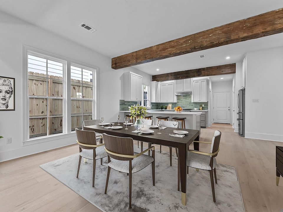 750 Acadia Street is a stunning new construction home offering approximately 2000 square feet of thoughtfully designed living space. This 3-bedroom, 2.5 - bath residence includes an upstairs den and a double garage, blending functionality with style. The home features a large open floor plan highlighted by 10-foot ceilings, hardwood floors, and beautiful old beams that add character and warmth throughout the living areas. The kitchen is equipped with high-end stainless-steel appliances, a spacious island with bar seating, and is conveniently located near the large laundry room and half bath - ideal for everyday living and entertaining. The primary bedroom and bath are truly a dream, featuring a large walk-in closet, double sinks, a separate shower and a relaxing soaking tub. Upstairs, the layout is exceptionally functional with two additional bedrooms, a full bath, and a spacious den perfect for entertaining, a media room, or flexible living space. Outdoor living is equally impressive, with a fabulous entertaining area, a large backyard, and a full-length covered back porch-perfect for gatherings, relaxation, or enjoying the outdoors year-round.