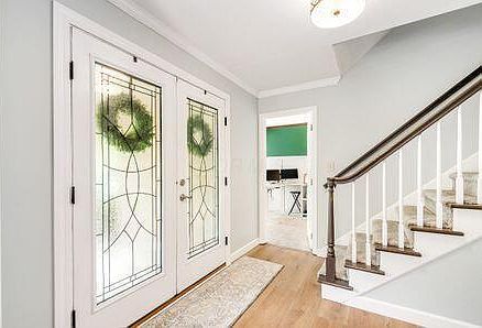 A separate first floor office gives you privacy while working from home and the board and batten walls with iron hooks also make it a perfect spot to hang jackets, backpacks, umbrellas or leashes with easy access to the front door.