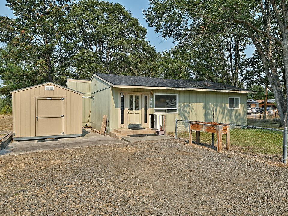 Come check out this cozy 2-bedroom, 1-bathroom country home in beautiful Eagle Point, OR! Natural lighting and beautiful floors make for an airy, classic feel throughout the house. The bathroom has been updated, to keep things fresh and modern. Outside, you'll find a covered patio to relax under and a fenced-in backyard providing a safe spot for your furry friends to run around. With 4.15 acres of open, level land, there's plenty of space to start a garden, build a garage, have some livestock, and live out whatever other ideas you may have!
