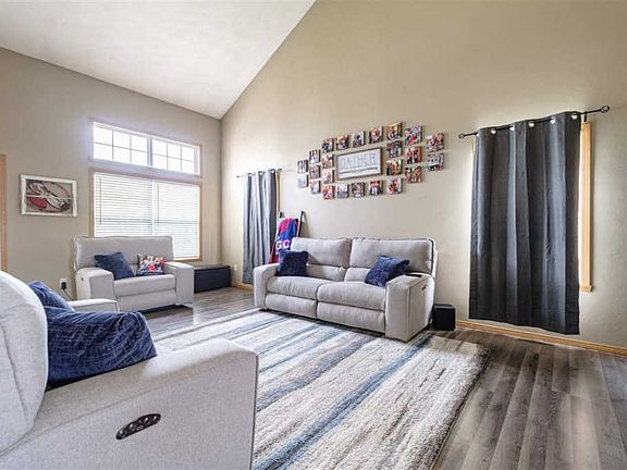 Nice home in The King's Prairie Place Subdivision. Entering the home you have a nice living room with vaulted ceilings that has an open flow into the kitchen. Main floor master with a shared master bathroom. Kitchen has a slider that goes out to the large deck and fenced in back yard. Upstairs you have 2 good sized bedrooms and another full bathroom. The lower level has finished space that is perfect for another living space, work out room or rec room. There is also a bonus room off the laundry room that is currently used as a huge closet but be anything. New laminate plank floors on the main level, 3 car garage and this home is close to the park and bike path.