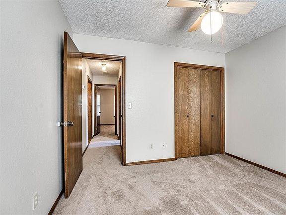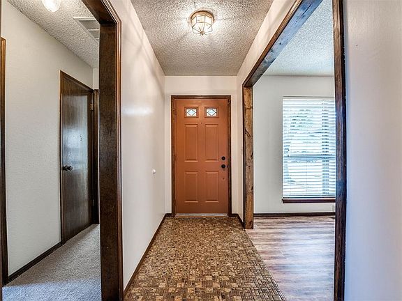 Looking for a starter home or your next home in highly sought after Choctaw/Nicoma Park Schools? This beautiful, well cared for home has had some updates and is move in ready. There's a large living area with cathedral beamed ceiling, a real masonry fireplace, built-in bookshelf and ceiling fan. Kitchen has stainless steel appliances, including a refrigerator. Dining space off kitchen. Primary bedroom is split from the other 2 bedrooms for privacy and features a full bath with tub/shower and walk-in closet. New carpet in the bedrooms. Living, dining and kitchen have wood look laminate flooring. Large, fenced backyard with covered patio and storage building. Just 20 mins. to Tinker AFB. Close to Choctaw High School and Choctaw Creek Park.