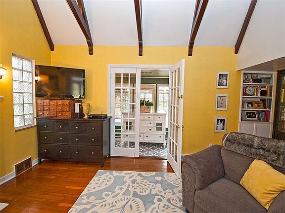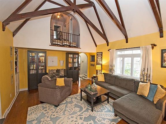 Attention to every detail within this home. Arch ways throughout the main floor. Unique grand living room with cathedral wood beamed ceilings, white brick gas burning fireplace and built-in shelving; French doors lead out to enclosed four season room. Rod iron railing; winding staircase has a landing overlook of living room. Large kitchen with deluxe appliances included. Separate breakfast nook leads to formal dining room. Dry basement with newer hi efficiency furnace and washer/dryer included. Fenced in large backyard with gazebo and upgraded landscape. Tandem garage for 2 cars or use back section as workshop. Area of unique homes close to shopping and dining options.