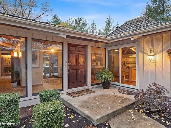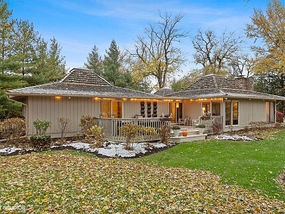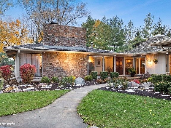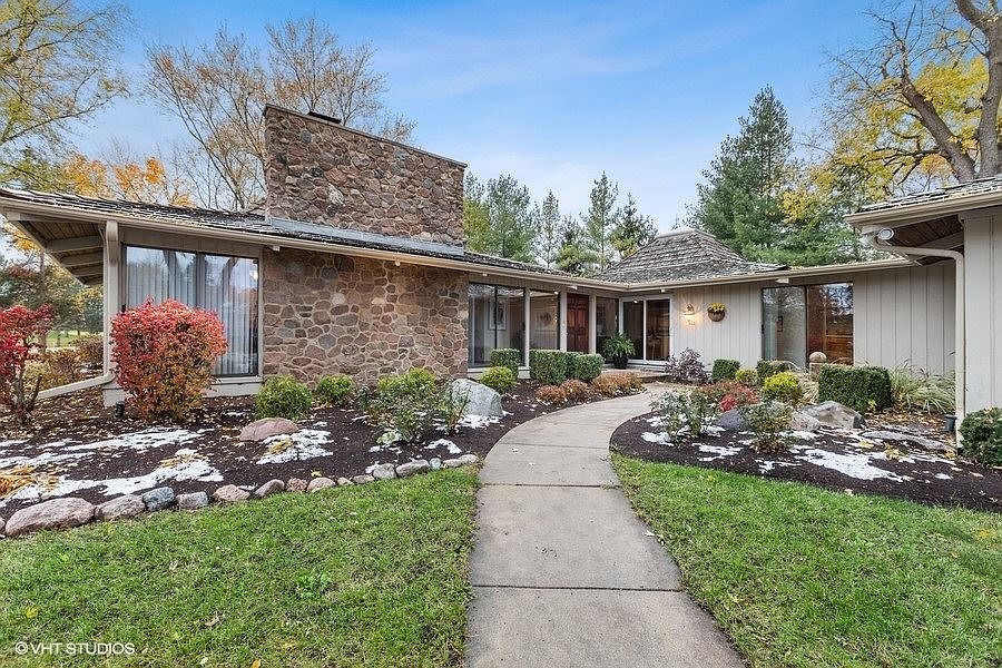 Step out of the ordinary and into the extraordinary with this one of a kind contemporary ranch. A fixture in the community, known for it's eye catching architecture, this home is on the market for the first time in decades! Truly a home that brings the outside in, lots of light glows within it's doors! Picturesque views in every room of take advantage of the lovely landscaping and setting! A home for anyone to appreciate! Large rooms with warm charm invite today's living and gathering in an enjoyable fashion! This home sits on a gentle hillside overlooking prestigious Crystal Lake Country Club. A nice walkway through meticulous landscaping invite all that enter! The foyer flanks the 2 main areas of the home and continues to the outdoor patio and pool area. On the right you will find an impressive fireplace and living room. Volume and height make this area tremendous and inspiring. A nice bar area adds entertaining! 2 sets of decks flank this great room! Down the hall we lead into 2 bedrooms with en suites. The primary bedroom hosts tall beamed ceilings, skylights, walk in closet and large bath with shower and tub! The second bedroom is peaceful and cheerful with walkout to deck and a nice bathroom with storage and closet! The kitchen sits in harmony with a family room and dining area. Hardwood floors, stunning ceilings and views of the pool can be admired here! Large island, stainless steel appliances, granite countertops are just of a few of "today's must needs" in this home! Additionally from this space you can walk into a cozy screened porch with an area large enough for an eating table and outdoor seating! Finishing off the main level is a large mudroom with access to basement and garage. A great space for all your storage and cleaning needs. The basement offers a rec room large enough for pool table or gaming area. A 3rd bedroom is very large and offers a quiet corner of the home. Utility storage/mechanical room has an additional crawl space. Outside is a feast for the eyes and fun for your soul! Plenty of decks, patios and pergolas! This properties' backyard is meant to be admired with a large inground pool and plenty of areas for lounging! Close to Crystal Lake and private beaches, parks and more! Take the plunge! Get out of the normal into the exceptional! This prized well designed residence is amazing to live in and own!