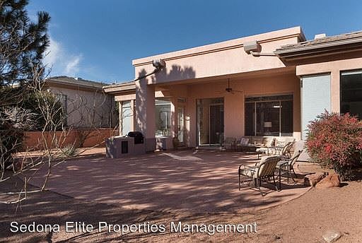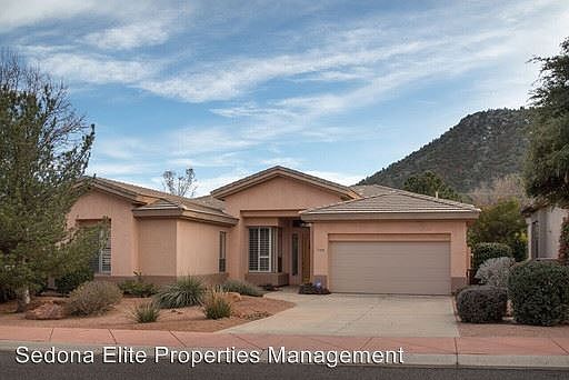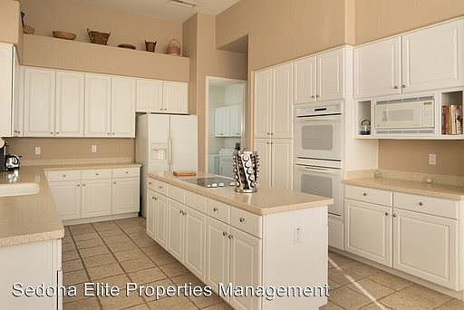3BR/3BA- VOC- $2,995/mo - 3BR/3BA with Den single family home located in the Sedona Golf Resort Subdivision in the Village of Oak Creek. Built in 1997 and approx. 2,537 sq. ft. Inviting living room with gas fireplace, flat screen TV, ceiling fan and windows that brings in natural light and views of the backyard. Spacious kitchen features all white appliances, two ovens and one is convection, island with electric stove, wonderful cabinet space, and breakfast nook with lovely views of the back yard. Den highlights cherry built-in bookcase and cabinet base, plantation shutters and offers the comforts for reading, playing games and quiet time. Master suite boasts king bed, walk in closet and sliding glass door that can access the back patio. Master bathroom showcases two separate vanities, heavenly soaker tub and spacious shower. Second and third bedroom offer queen beds. Full bathroom with tub/shower combination. Separate laundry room. Charming and expansive back yard, full fenced, wonderful built in BBQ, covered patio area and mature landscaping. Double car garage. $2,995/Mo No Pets Allowed (RLNE4942920)