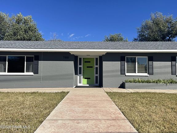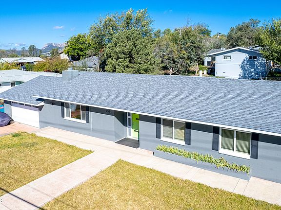 This Charming Mid Century Modern home has is all!! Located just minutes from downtown, hospital, schools, shopping and all things Prescott! Situated on an oversized corner lot, this single level ranch style home has been thoughtfully remodeled and is move in ready! The Galley kitchen is bright with tons of cabinets and counter space has bar seating and is open to the dining area. The Living room features a gorgeous stone, wood burning fireplace and built in book shelves. 3 bedrooms, 2 Full baths with newer Vanities. Master bath has step-in shower. Large backyard w/shed & 2 car garage, large concrete patio, fenced backyard, newer furnace, newer septic system, New roof, RV access to backyard, wood laminate flooring. neutral paint throughout and the BEST flow. Come see for yourself!