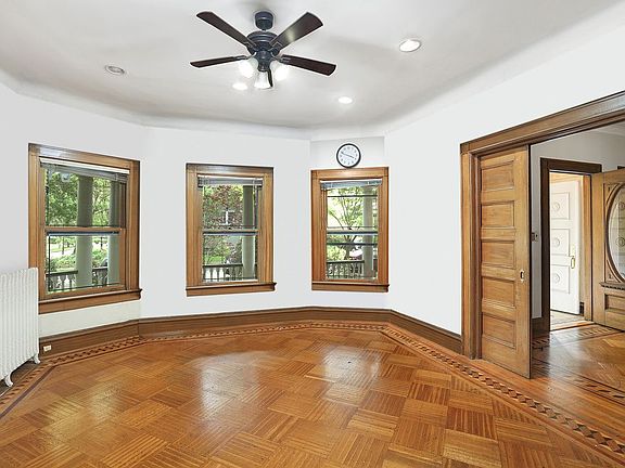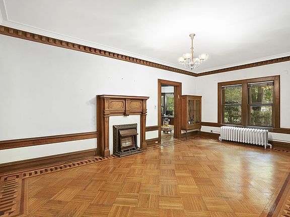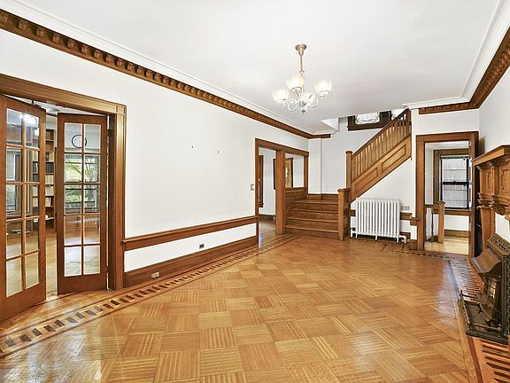 Huge, corner lot 8 bedroom, 5.5 bathroom Victorian in Ditmas Park. Sitting on a generous 65 ft x 100 ft lot, this spacious 3,518 square foot home looks out on a picturesque tree-lined street in one of Brooklyn's most charming neighborhoods. With exceptional original detail including two decorative fireplaces, parquet floors with four distinctive inlay designs, leaded glass built-in cabinets, and stained glass windows, this home is full of character and unlike anything built today. The wrap around porch welcomes you and you enter into the lovely, oversized foyer. On your right is a den or front office with the main living space in front of you. As you move into the large living room you'll find original touches like a decorative fireplace, unique carved moulding and two leaded-glass built-in cabinets. The living room flows into the distinctive dining room where multiple bay windows span across a curved wall. Opposite the windows, there are two leaded-glass display cabinets flanking the decorative fireplace. The rare details of this room make it perfect for entertaining. The eat-in kitchen is accessible from both the living room and dining room and has a sliding glass door that leads out to the private back deck. The kitchen also offers a walk-in pantry area and a servants staircase. You'll also find a convenient half bath between the dining room and the kitchen. Heading up the large, main staircase you'll see original stained glass window displays. Once on the second floor, you'll enter the master bedroom that showcases multiple sets of bay windows in a rounded wall that flood the space with light. The master also features a large, built-in mirror with carved wooden details surrounding. The second floor also hosts three additional bedrooms and two full baths. Up on the third floor are four more bedrooms, two full bathrooms and a storage closet. The basement is finished with plenty of space for recreation or simply additional storage and also has a kitchenette and laundry. This legal two-family is currently configured as a one family. All of this is conveniently located near shopping and dining as well as the B and Q express trains to Manhattan. Bring your imagination and you can create the home of your dreams!