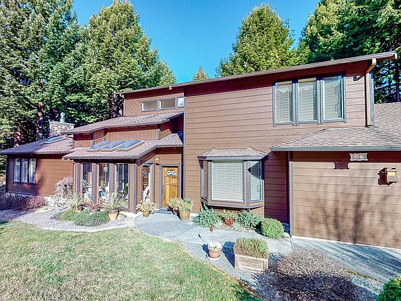 First time on the MLS: this 3 bedroom, 2.5 bathroom custom home was built by the current owner! Situated on one acre at the top of the coveted California Avenue, this home boasts an especially unique feature for Humboldt County: a permanent above ground pool featuring sand filtration and gas heating. The pool is also surrounded by extensive decking with privacy fencing. Continuing on the outside of the home, there is cedar siding, a dog run, a large garage with storage rooms, and mature landscaping with redwood trees. Connecting the home to the garage is a laundry room and mudroom. The property is also close to Arcata's forest trail system. Within the home, you'll find a brand new remote controlled gas fireplace, along with new window glass and window coverings through most of the home. Custom stained glass on the front door and side light by a local artisan. The kitchen has been recently upgraded with quartz countertops and new Cortex waterproof cushioned flooring. Connecting the living room and the kitchen is a breakfast nook area. The living room and formal dining room feature vaulted tongue and groove ceilings with skylights. Off of the formal dining room, there is both a solarium and a sitting room. The three bedrooms are upstairs, but the downstairs office could also be used as a bedroom.