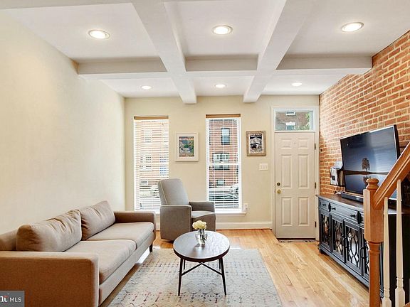 You won't be able to resist this gorgeous, move in ready, completely renovated Federal Hill townhouse with parking! This home features a neutral color palette, an open floor plan and gleaming hardwood floors. The gorgeous living room hosts a spectacular coffered ceiling and an exposed brick wall. The inviting dining room with a marvelous tin ceiling is perfect for entertaining. The kitchen boasts stainless appliances, a planning station and gas cooking. There is a main level powder room with a stackable washer and dryer. Upstairs is the primary bedroom with vaulted ceilings and sunny oversized windows. The primary bedroom en-suite bath has a modern walk-in shower. There is a second generously sized bedroom with its own en-suite bath. This bedroom also leads out to the two level rooftop deck with magnificent water and city views. All this plus a 1-car garage offering off-street parking, a must in Federal Hill. The lower level has endless storage space. Updates: Bathrooms, Carpet