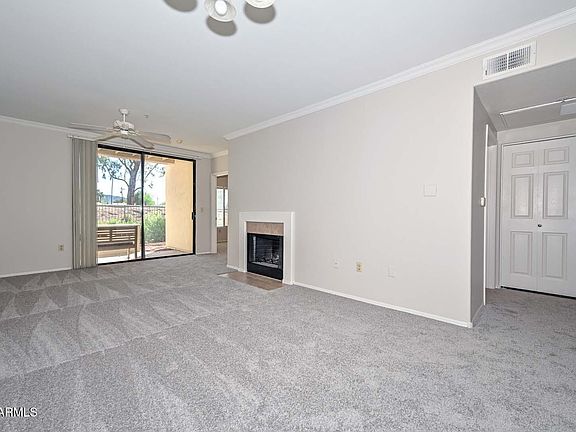 Very nice 2 bedroom, 2 bath home in the Las Brisas community. Large family room with cozy fireplace, recently replaced neutral carpet and two toned paint, crown molding, 2 inch blinds, ceiling fan, brushed nickel fixtures, raised counter tops and walk-in closets. Wired for cable and high-speed internet. Nice sized patio looks over the common area and canal! Gated community offers 3 pools, spa, tennis court, exercise room, clubhouse, walking trails and backs up to Arizona Central Canal! Just minutes from hwy 51, I-17 and downtown. Move in Ready!