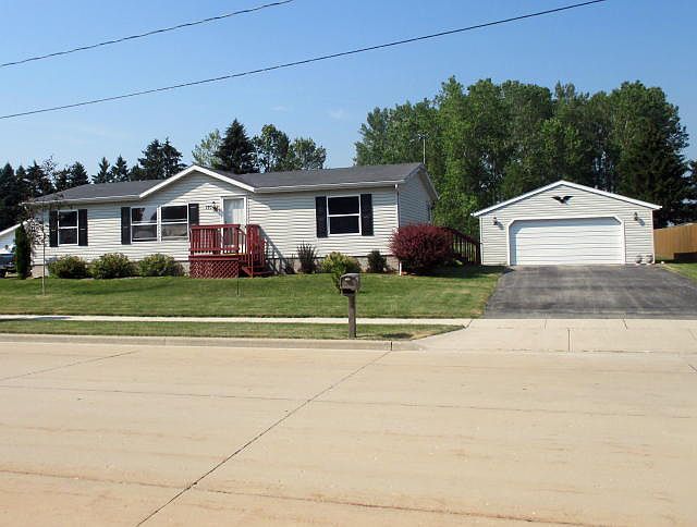 This 3 BR, 2 car insulated garage, 2 bath manufactured home is walking distance to the 5.5 mile paved recreational trail along the shore of Lake Michigan. All rooms have been re-textured, painted, & new oak trim crown molding, window sills & door frames. New landscaping with watering system installed around house to water perennials all at once. Open concept home. Patio doors to deck with country view, 8X12 shed, partial fenced yard. Main floor laundry. All kitchen appliances included. Large closets, cathedral ceiling, skylights allow plenty of light inside. Home has crawl space only.