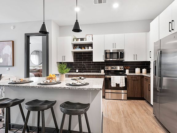 - Exterior features: Bicycle storage, Business Center, Courtyard, Covered Pavilion with Bar Top and TV Seating, Flooring: Wood, Mailroom, Maker's Space, Modern Designer Finishes, Outdoor Kitchen, Podcast Stations, Shuffleboard, Stainless-Steel Appliances, Stylish Pendant Lighting, TV Lounge