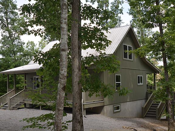 Beautiful custom built cabin , large loft, with finished master suite in basement located in a private setting with Big South Fork bordering 3 sides. Saddle up and ride into the horse trails at the end of driveway. Almost 3 acres with well developed divided and fenced pastures. Barn with 2 12x12 stalls, automatic waters, lights, hay drop, mat and fan. Wash area with hot and cold water, bathroom, large tack room with saddle and tack racks, easy loading hay loft with outside stairway access. Parking/camping area with water, septic, and electric hook ups with outside bonfire area. A new 21x40 equipment storage shed with plenty room for tractors, mowers, tools etc, with large workshop with water and wash tub. Large back full length covered porch with gas grill, PLENTY OF PRIVACY