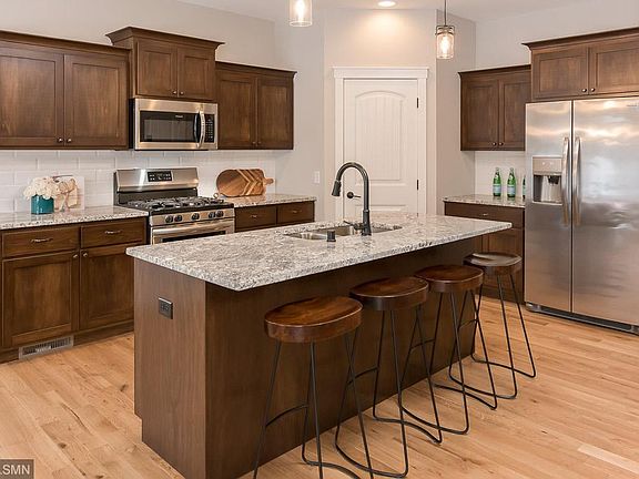 Stone River Homes - Completed new construction - Move in ready. So many designer features incorporated into this spacious, 1 level home located in the quiet River Village of Newport - one level living - perfect for empty nesters or down sizers. 2 BRs & 2 baths on the main level with 2097 finished sf. Elegant owner's suite with private bath, floor to ceiling ceramic shower and huge walk in closet. Premium white enameled trim package. Chef's kitchen features custom cabinets, SS applcs w/gas range, walk in pantry & granite/tile throughout. Real hard wood floors throughout the main level. Large mud room from garage with lockers and main level laundry. Enormous family room highlighted by a cozy fireplace. Space for 2 more bedroom & 3rd bath in lower level. Completely sodded...just ready to move in and enjoy. Others from $299,900.