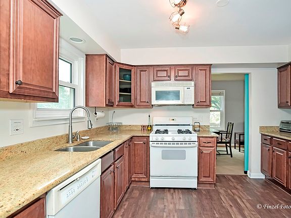 This East side of the river home is just two blocks from Presidential Park. The open concept kitchen connects to the large family room featuring a wood-burning brick fireplace. New stylish sliding barn door in the dining room and new wood vinyl flooring on the main level. Granite counters, updated bathrooms with new flooring. Large finished basement with tons of storage. 3 generous-sized bedrooms and closets. Newer energy-efficient windows, porch, and walkway. The backyard features a large concrete patio and fire pit. New water heater in 2022.