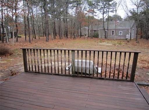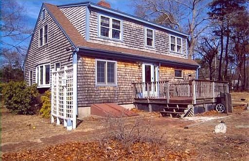 EASTHAM-Cape style home has many new improvements in appx 1996-Roof, upstairs finished. Flrg & Furnace. Set on a lg corner lot (25,700 sq ft) very close to Great Pond (4/10ths mile), down the road to Kingsbury Bch (1 mi)on CC Bay.Home offers a front to back LR w a brick ctr FP, built in sitting area, wood flooring & dining area overlooking the rear yard & deck. 3 BRs, 2 BTHs, 1st Fl Lndry & MBR, full bsmnt & a great barn/shed/garage 18' X 26'. New Gas Furnace,Hot Wtr Tank, Circuit Bkr. $379,000.