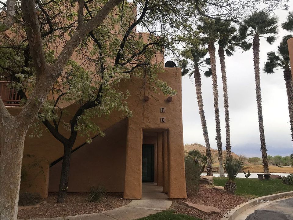 Main level, 989 sq. ft. remodeled 2 bedrooms, 2 bathrooms condo on the Lake of the Oasis Palmer Golf Course with the most amazing views of the lake, the golf course and the mountains. Remodel includes new kitchen with beautiful granite and subway tile backsplash. All new luxury plank vinyl in living area and master ensuite with the newly redesigned bathroom. Designer 2 tone paint throughout. On site private swimming pool/spa for residents only, in addition to membership to the Mesquite Vistas Country Club resort amenities. Home grown resort living at its finest.