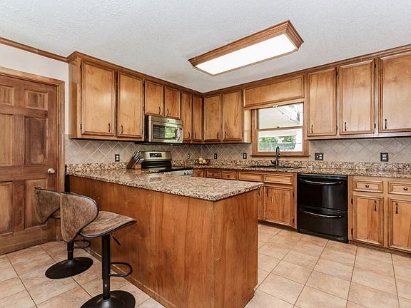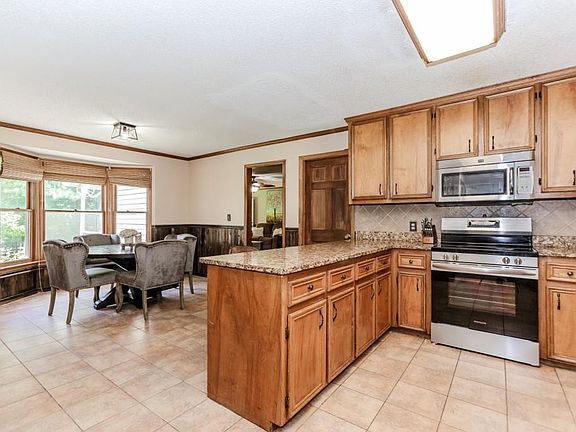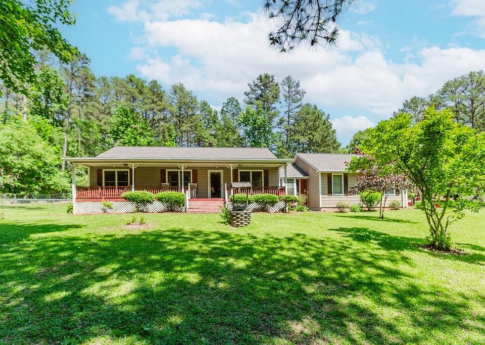 Fantastic New Listing - No HOA, Sprawling Acre+ Wooded Corner Lot! Welcome home to a lifestyle of easy living and exceptional outdoor entertaining! This beautiful ranch-style home sits on over an acre of wooded land, offering privacy, space, and charm in every direction. Enjoy your morning coffee or evening relaxation on the expansive front porch that spans the length of the home perfect for rocking chairs and quiet moments. Situated on a desirable corner lot, the fenced backyard boasts a covered patio with a grand outdoor stone fireplace, making it an entertainer's dream. Step inside to discover a thoughtfully designed chef's kitchen featuring granite countertops, abundant cabinetry, a breakfast bar, and a sunny breakfast room with a charming bay window. Hardwood floors flow throughout the oversized fireside family room, centered around a dramatic stone fireplace. The spacious master suite is your private retreat, complete with two custom closets and plenty of room to relax. Two additional large bedrooms offer generous closet space for family, guests, or home office needs. The well-designed laundry room keeps you organized with ample space to manage daily tasks. Need more room? You've got it. In addition to the 3 bedrooms, there's a large flex space with double French doors leading to the covered back patio perfect for a home office, gym, playroom, or guest space. It's a blank canvas ready for your personal touch. Don't miss the bonus room over the garage a nearly finished space with endless possibilities. Create a private studio, additional guest suite, media room, or anything your lifestyle calls for. Storage won't be a concern with a dedicated storage room on the back exterior of the home ideal for yard tools, hobbies, or seasonal items. This property is more than just a house it's a haven. With over an acre of lush surroundings, versatile living spaces, and outstanding outdoor features, you'll be ready to call this one home the moment you arrive.
