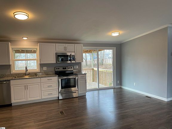 The seller has spared no expense in the renovations. As soon as you pull on the property you will recognize the quality. The huge front porch greets you, and once inside you will immediately recognize the expert workmanship. The home features new cabinets, granite counters, new hardwood floors, new HVAC, new water heater, new plumbing, sinks, showers, faucets, light fixtures, new brick foundation, new termite treatment system, new septic drain line, covered front and rear decks, and situated on over an acre of level unrestricted land. There is also a 30x17 concrete pad which would be perfect for an RV, Boat or a future garage. Did I mention the amazing location close to growing Fountain Inn.