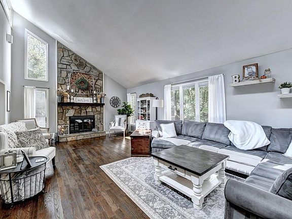 Gorgeous contemporary/modern home in the heart of Roswell. This spacious split-level home sits on over one acre and includes hardwood floors, 2-story stone fireplace, updated kitchen w/granite, breakfast area that opens with French doors to a newly built deck overlooking spacious fenced yard. Master bedroom w/beamed cathedral ceiling and French doors that open to a Juliette balcony. Family room on lower level with additional bedroom/bath. New roof, HVAC, water heater all within last 5 years. Exterior repainted and lower deck rebuilt. Don't miss this move-in ready gem! Great schools and great location!