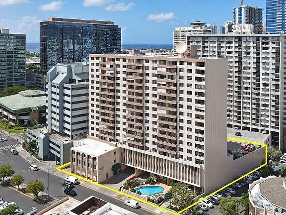 Imagine the many possibilities to REMODEL with personal features to Kitchen, Jack & Jill bathroom; add split-A/C to create your 'island style living'. What's the remodel costs: $25,000, $35,000, $45,000...you decide. VIEW from 11th floor facing northeast is GREAT! Parking #A-1 is a corner, extra BIG, covered stall w/secured entry too. There's a security guard too. PET friendly-YES, but under 20 lbs. Near Don Quijote and many shopping venues, restaurants, businesses. ****H-U-R-R-Y! This is the ONE!**** See Good-to-Know Information in supplement file.