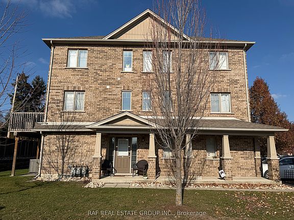 Welcome to 1-750 Lawrence St, nestled in the highly sought-after family-friendly Complex in Preston, Cambridge. This impeccably maintained end-unit townhouse is the largest model in the community, offering exceptional living space, rare features, and unmatched convenience.Step inside this 3-bedroom, 3-bathroom home featuring a double car garage and parking for four vehicles-a true rarity. The bright, open-concept kitchen is a culinary oasis, complete with stainless-steel appliances, granite countertops, ample cabinetry, generous counter space, and abundant natural light. Meal prep becomes a pleasure, and the adjoining dining area and family room create a warm, inviting atmosphere perfect for hosting guests or enjoying family gatherings.This beautiful end unit offers two walkouts-a lower-level patio and an upper deck-ideal for sipping morning coffee, hosting BBQs, or simply unwinding while overlooking the peaceful park setting.Upstairs, you'll find three spacious bedrooms, including a primary suite with a 3-piece ensuite featuring a standing shower and a walk-in closet. A cozy reading nook adds a charming touch, providing a quiet retreat for relaxation or a good book.The complex itself is designed for comfort and community, with visitor parking throughout and a charming parkette play area. The location is unbeatable-just a short 10-minute walk to Riverside Park, where you can enjoy hiking trails, splash pads, sports fields, a BMX and skateboard park, fishing areas, and more. Shopping, dining, and entertainment are all nearby, and commuters will appreciate the easy access to Hwy 401, Hwy 8, and public transit.