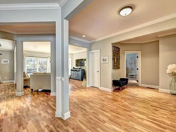 Beautiful custom built home with 3 bedrooms and 3 1/2 baths. Master on main, open and bright floorplan, hardwood floors throughout the main level living areas, gourmet kitchen with center island, a breakfast bar, separate dining room and keeping room. Upstairs has a loft/office area, bonus room which could be a 4th bedroom and 2 bedrooms with private baths. Unfinished basement ready for expansion. Large deck, flagstone patio with a firepit and a spacious private backyard. Very close to Lake Lanier and great access to Peachtree Industrial.