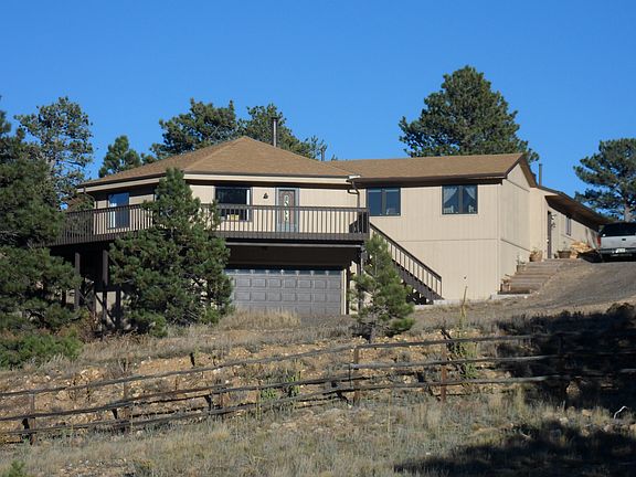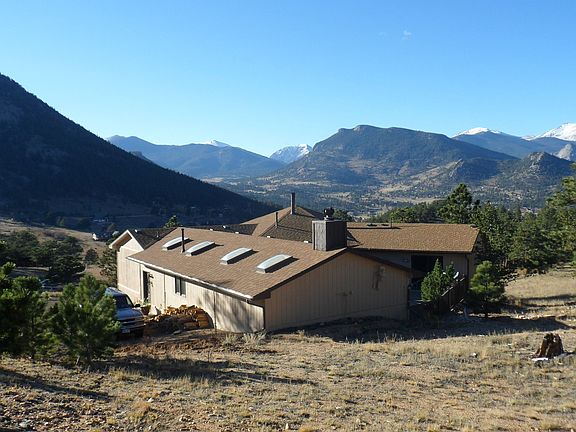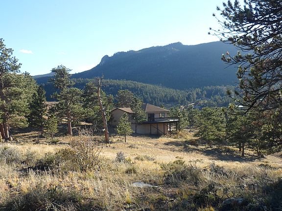 Private setting on 2.77 acres with incredible views into Rocky Mountain National Park,horse property.Open floor plan, hardwood floors, moss rock fireplace, wonderful vaulted wood beamed ceilings, kitchen with granite counters and custom cabinets, wood stove.Views from every window and the wraparound deck.Master retreat suite,luxurious master bath,private access to patio with hot tub.Rare opportunity that its totally private yet still close to town.1250 sqft of Deck,grossed $37,000 in 2014 rental