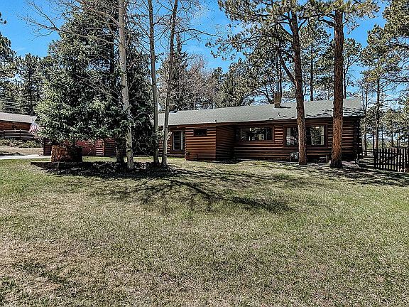 Amazing opportunity to own and enjoy living in this 1948 updated true Log Cabin home in beautiful Woodland Park! There are so many features and attributes to this home so let's start with a prime feature! There is an attached studio apartment with a 3/4 bath with private entrance that has been monthly leased for $600.00 (realistic monthly rent is $800.00) - subsidize your mortgage without a commitment! Another fantastic attribute of this home is that it is an OAHP site (Office of Archaeology and Historic Preservation) # 5TL 4171 - not many people can boast their home is affiliated with historic office. This home is located on a .39 acre treed lot with an immense custom cut and stained back patio and side walkway, 18x25 finished workshop area with electricity and built ins, patio area is pre-wired for a future hot tub and the large level fenced-in backyard area has lots of landscape lighting, play set and trampoline, side yard area with RV parking - bonus that the backyard is adjacent to the awesome Centennial Trail to Manitou Lake! What a location! Also close to shopping, business and restaurants along Main Street in Woodland Park! The interior has great space! The large living room with stone accented gas fireplace has lots of natural sunlight and hardwood flooring. The open kitchen has granite countertops, eat in kitchen, and all stainless-steel appliances stay - plenty of storage in the adjacent kitchen pantry. The main level also has a laundry area, master bedroom with private attached full bath, 2 bedrooms, and full hallway bath. This home has everything you need for peace, amenities, charm, exterior space, history, location, main level living and so much more!