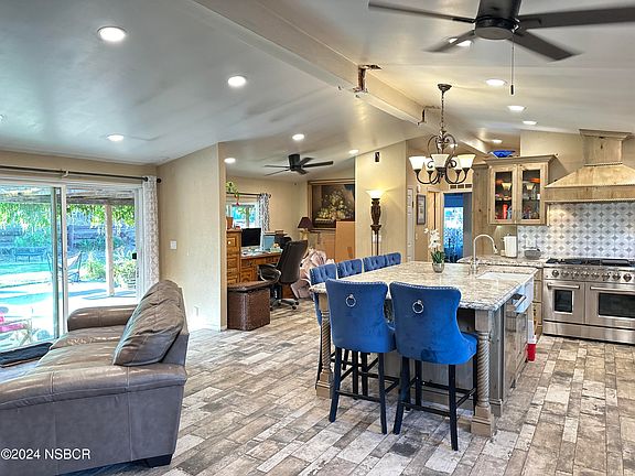 Second Chance to Own Your Dream Property! Now with a Recent Price Reduction, this incredible property offers everything you need, including space for livestock and room to expand your home-based business. Don't miss this opportunity to create the lifestyle you've always wanted! Welcome to your slice of paradise nestled on a tranquil lot just under an acre situated on a charming cul-de-sac. As you step onto this paradise, you're greeted by the harmonious blend of luxury and functionality. Imagine mornings spent sipping coffee on your covered patio, surrounded by lush greenery and the soothing sound of birds chirping. Upon entering the home, you are greeted by hand-carved custom cabinetry in the kitchen, hall bathroom, and laundry room. Enjoy this open-concept design that seamlessly connects the living, dining, and kitchen areas, creating an ideal space for entertaining guests or relaxing with family showcases exceptional craftsmanship. The kitchen is a chef's dream, featuring a new 8-foot by 5-foot island with leathered granite and a custom double OG edge, Viking stainless steel appliances, and a 48-inch commercial stove with a custom-built hood range. A porcelain farm sink and a separate veggie sink enhance the kitchen's convenience and style. This home features three bedrooms, including a master suite with its own bathroom, and an additional bonus room that can serve as a guest living room or extra bedroom. The outdoor space is designed for relaxation and entertainment, featuring fruit trees, berry bushes and three garden boxes all equipped with a drip irrigation system. A gated jacuzzi area offers privacy and serenity. Amenities include a woodshed, a fenced-in livestock pen, and a fully graded area ready with options to building a potential ADU or guest house. The property is enclosed by 6-foot by 8-foot redwood privacy fencing and features two twenty-foot opening gates with new steel posts. The property includes two septic tanks, one for the RV hookups and a new tank for the home. With its convenient location and impeccable features, this property embodies the epitome of refined living. Shopping is nearby, schools, freeway access and much more!