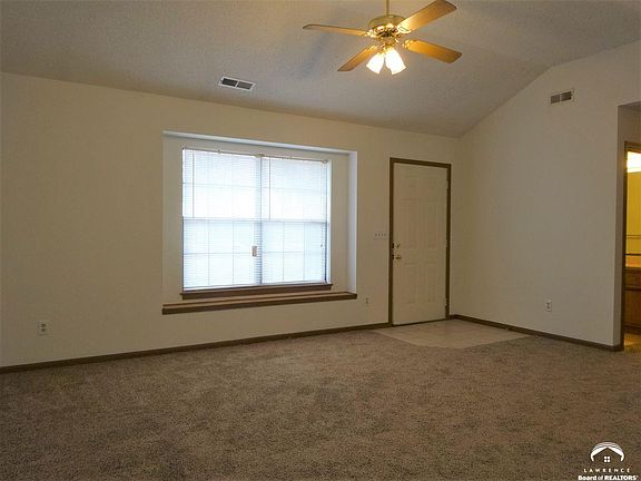 Quaint North Lawrence neighborhood home on a large corner lot. Enjoy the attached double car garage plus parking space at this 2 BR, 1 BA ranch home. Laundry room off the kitchen, open floor plan. New carpet installed on 2/18/18.